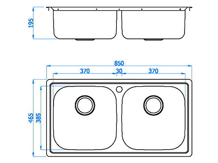 型號:635Y款式:雙盆安裝方式:嵌入式總尺寸:850*465 mm雙盆:370*385*195 mm