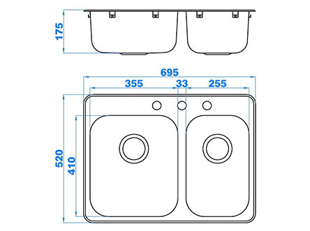 型號:706款式:雙盆安裝方式:嵌入式總尺寸:695*520 mm大盆:355*410*175 mm小盆:255*410*175 mm