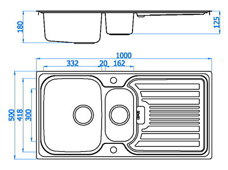 型號:124款式:單瀝水板雙盆安裝方式:嵌入式總尺寸:1000*500 mm大盆:332*418*180 mm小盆:162*300*125 mm
