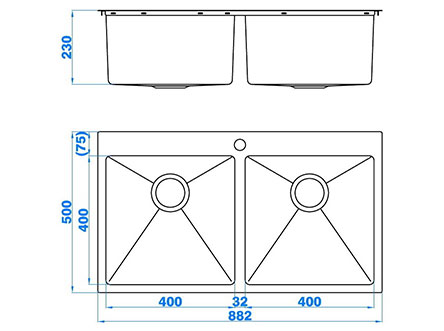 型號(hào):5424款式:雙盆安裝方式:嵌入式總尺寸:882*500 mm雙盆:400*400*230 mm