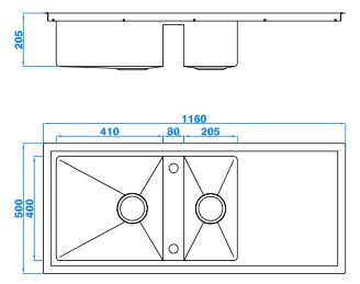 型號(hào):5467款式:單瀝水板雙盆總尺寸:1160*500*205mm大盆:410*400*180 mm小盆:205*400*180mm